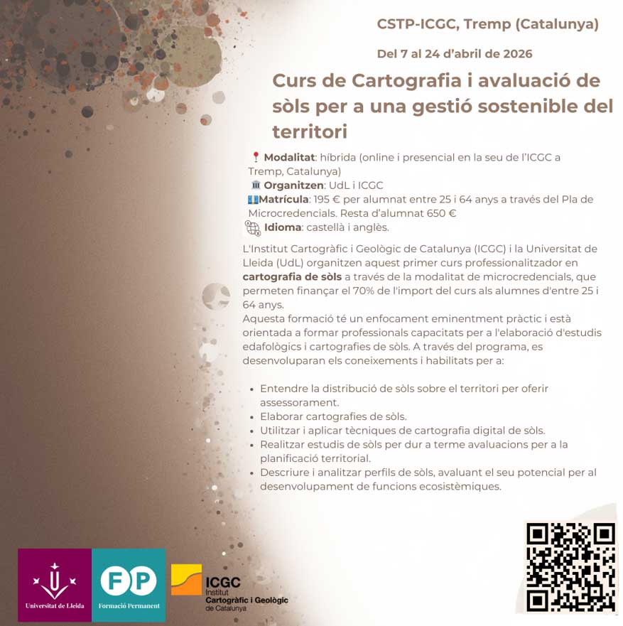 Aquesta formació ofereix una especialització actualitzada per donar resposta als nous reptes ambientals i de planificació territorial, capacitant l’alumnat en les metodologies més avançades en cartografia de sòls. De manera que l’objectiu principal és formar professionals capacitats per elaborar estudis edafològics i cartografies de sòls orientades a una gestió sostenible del territori.