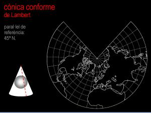 La projecció cònica conforme de Lambert per a tot un hemisferi i centrada aquí en el paral·lel 45°N.